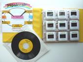 Note: l'objet le plus surprenant de cette série des "Pop English" / "PopAlécole" : un classeur comprenant 4 séries de diapositives ainsi que 3 disques 45t. Les 2 premiers 45t contiennent des chansons associées aux diapositives et le 3e est un dialogue entre une inspectrice de l'éducation nationale et la conceptrice de l'objet, visant A démontrer ses multiples vertus.